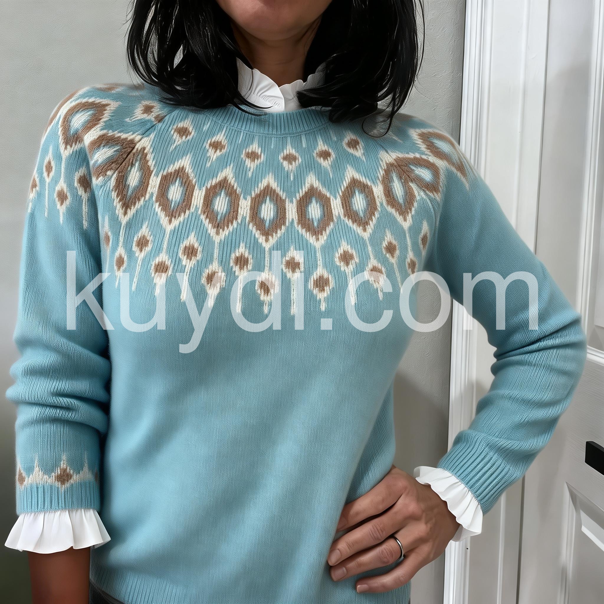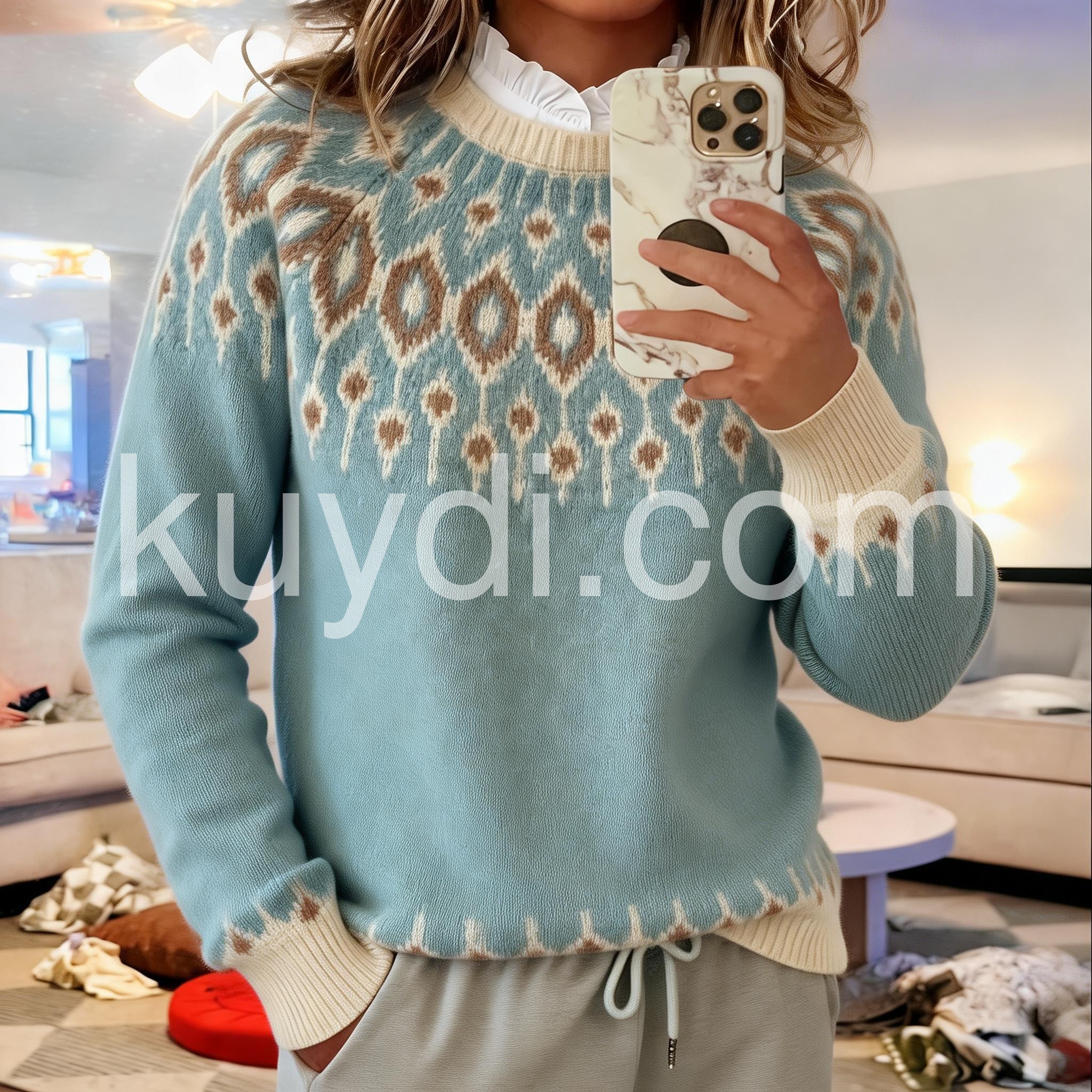 This Temperament Light Blue Round Neck Sweater is a must-have for any fashion-forward individual. Made from high-quality materials, it offers both style and comfort. The round neck design is perfect for any occasion and its light blue color adds a touch of elegance to any outfit. Stay stylish and comfortable with this must-have sweater.