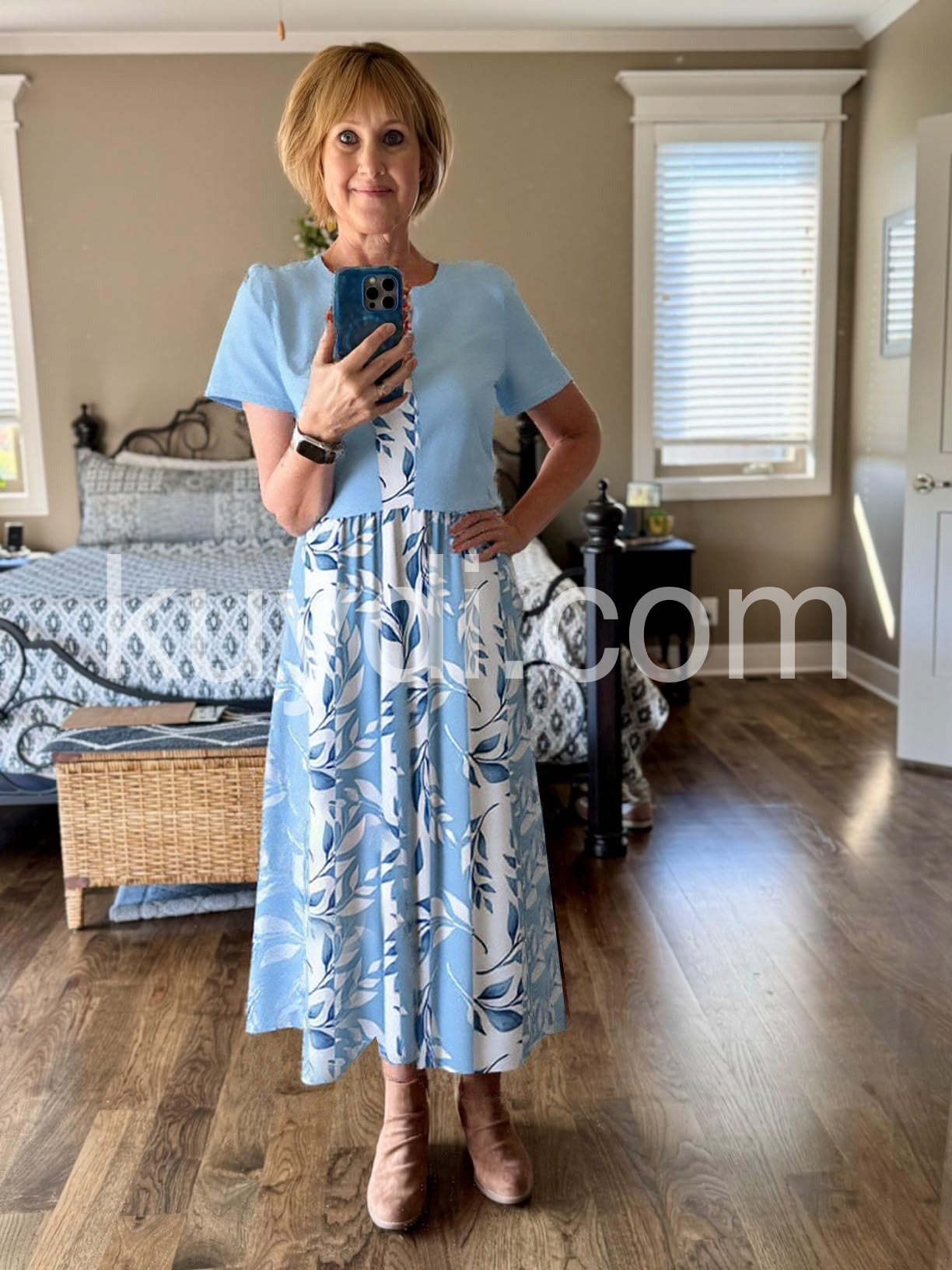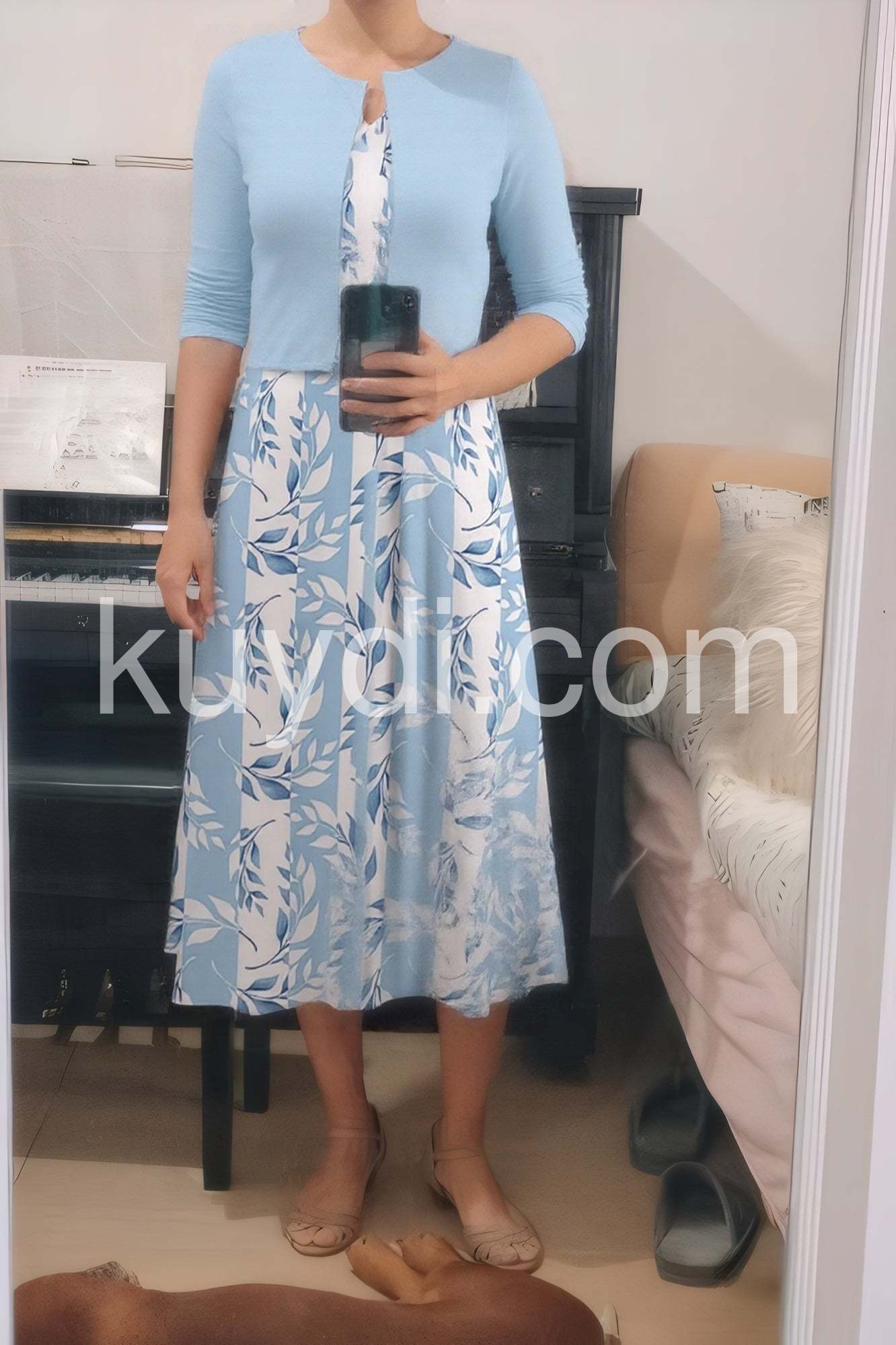 Discover the perfect balance of style and comfort with our Unique Blue Plant Print Midi Dress. Featuring a beautifully printed design and a matching jacket, this dress is perfect for any occasion. Made with high-quality materials, you'll feel confident and stylish all day long.