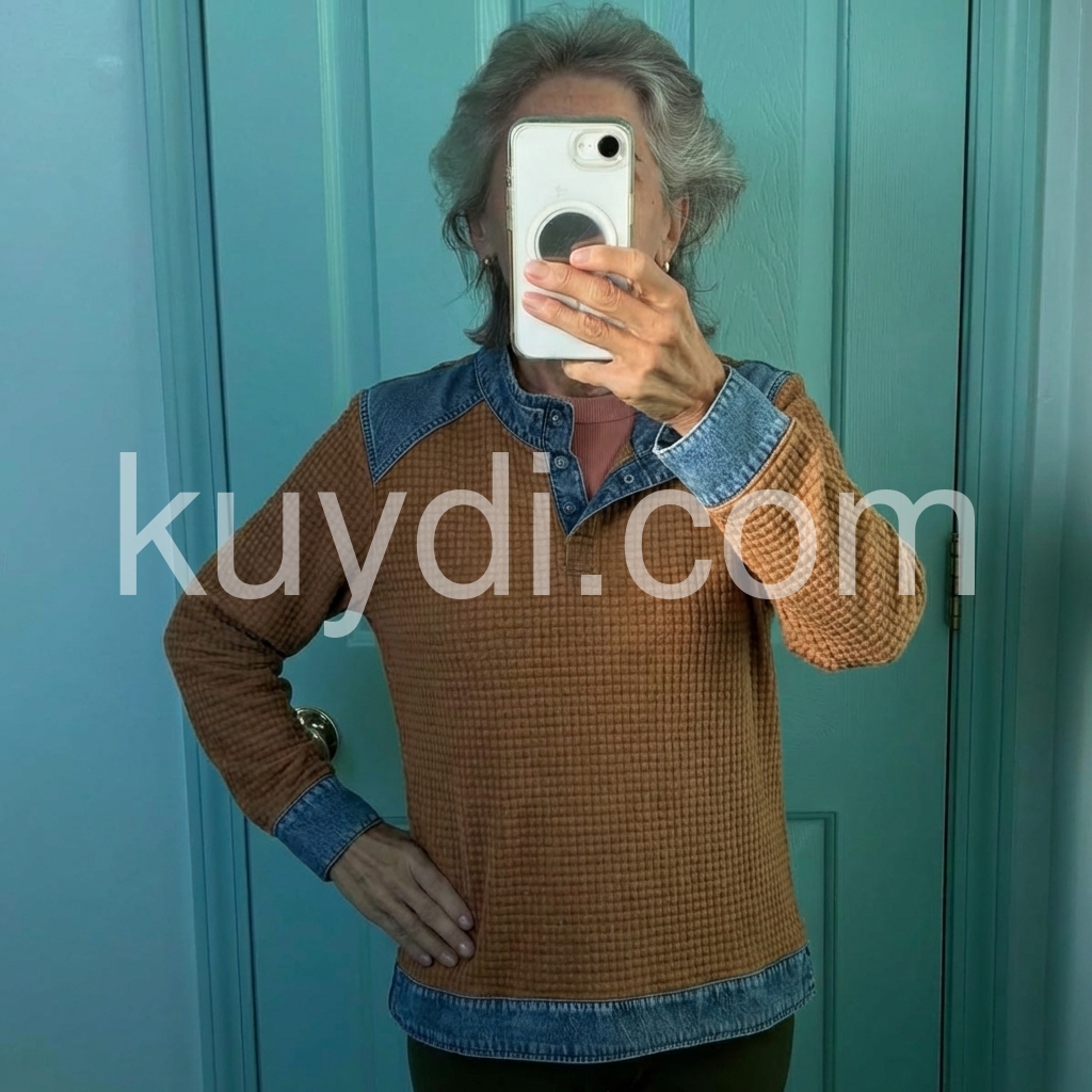 I’m really impressed with this top. The waffle pattern gives it a unique look, and the denim contrast makes it stand out in a good way. I also like that it’s easy to match with different outfits—perfect for someone who wants both style and comfort.