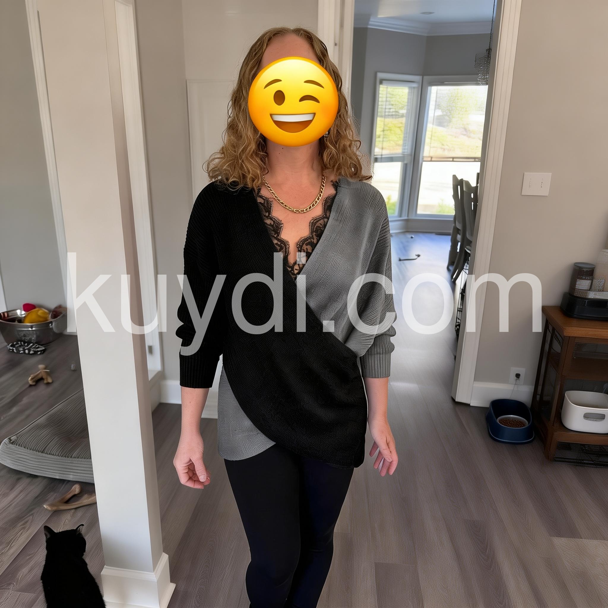 Indulge in this ultra-luxurious sweater, perfect for slightly cooler nights and days! This cozy knitted sweater features a black and gray side that gives way to a plunging v-neckline, along with billowy fitted sleeves for a chic look that is trendy and elegant. Wear this below the waist sweater with your favorite layering necklaces, jeans, skirt, tall boots, heels, or flats.