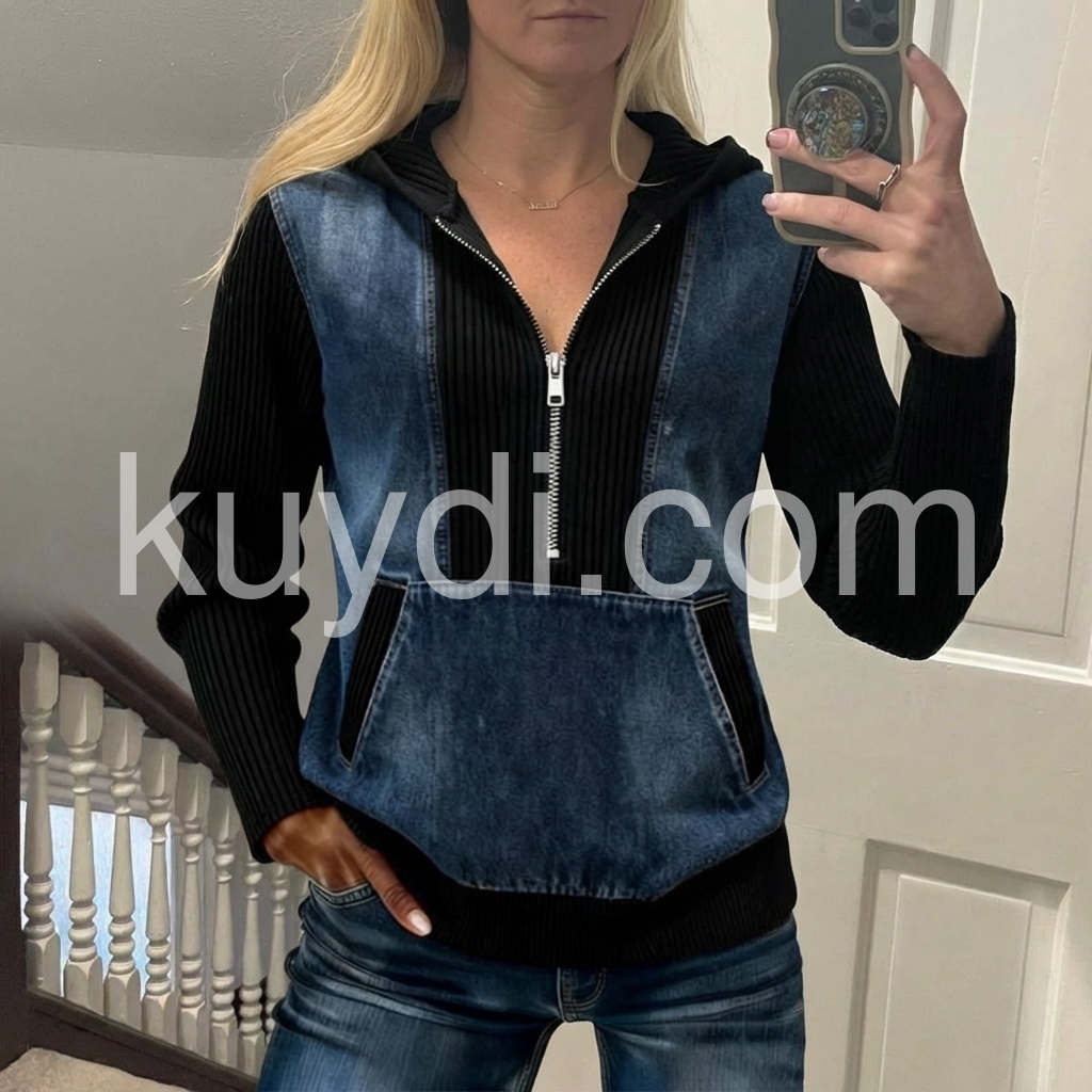 Cool Half Zip Kangaroo Pocket Denim Sweatshirt