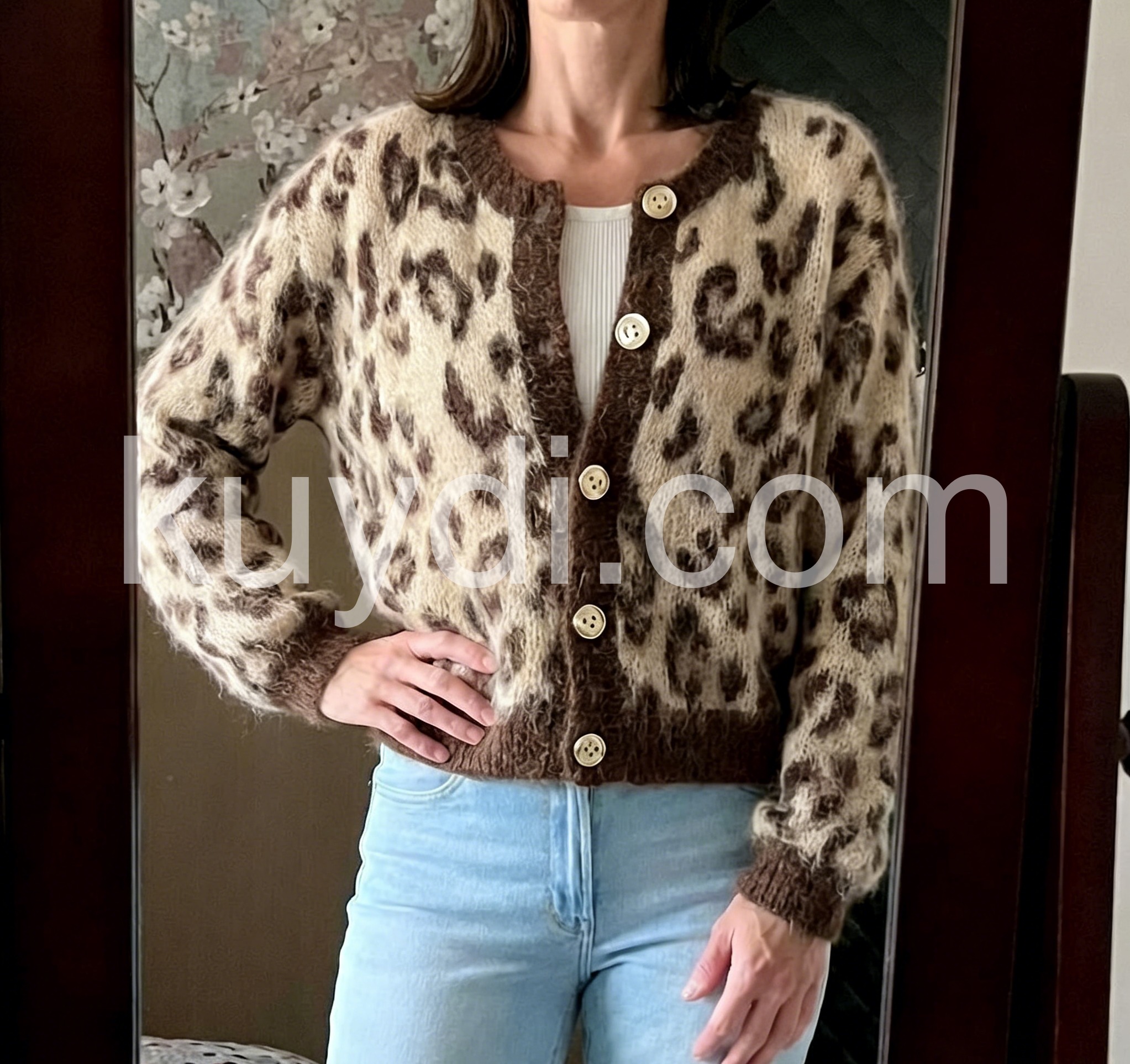 Embrace bold style with the Wild Long Sleeve Leopard Cardigan. Crafted for comfort and flair, this piece features a distinctive leopard print that adds an adventurous edge to any outfit. The long sleeves provide warmth and versatility, making it perfect for layering in cooler weather. Its quality fabric ensures durability while maintaining a soft touch against the skin. Ideal for elevating casual looks or adding a statement to your wardrobe, this cardigan combines fashion-forward design with practical comfort.