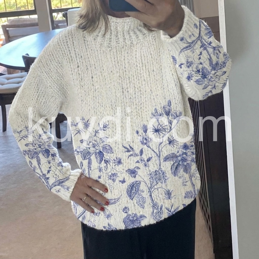 This sweater is so cute on! I love the flower details and how it feels on. It's soft and has stretch to it. It washes up great and keeps it shape. It's true to size and and pilling. It will keep you pretty warm as well - not thin and not see through. It's a great stylish sweater to have in the collection.