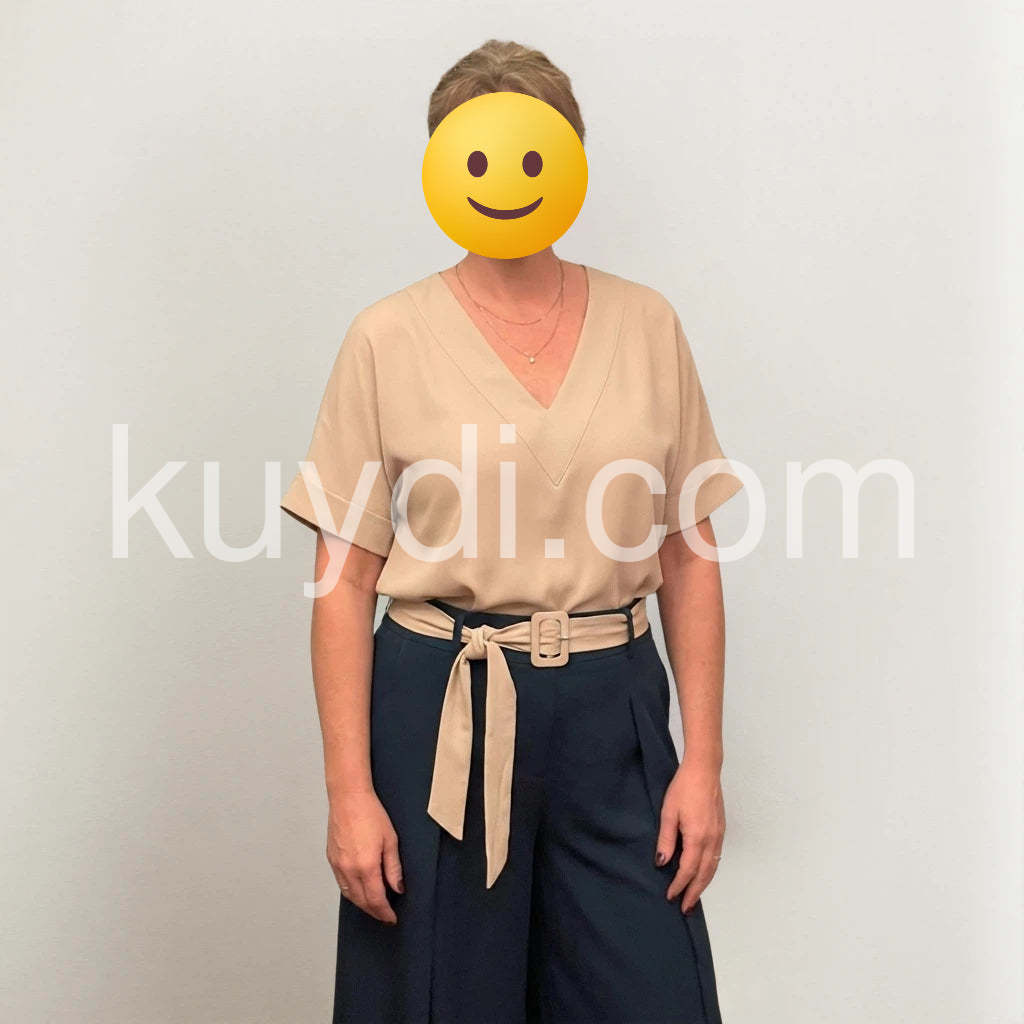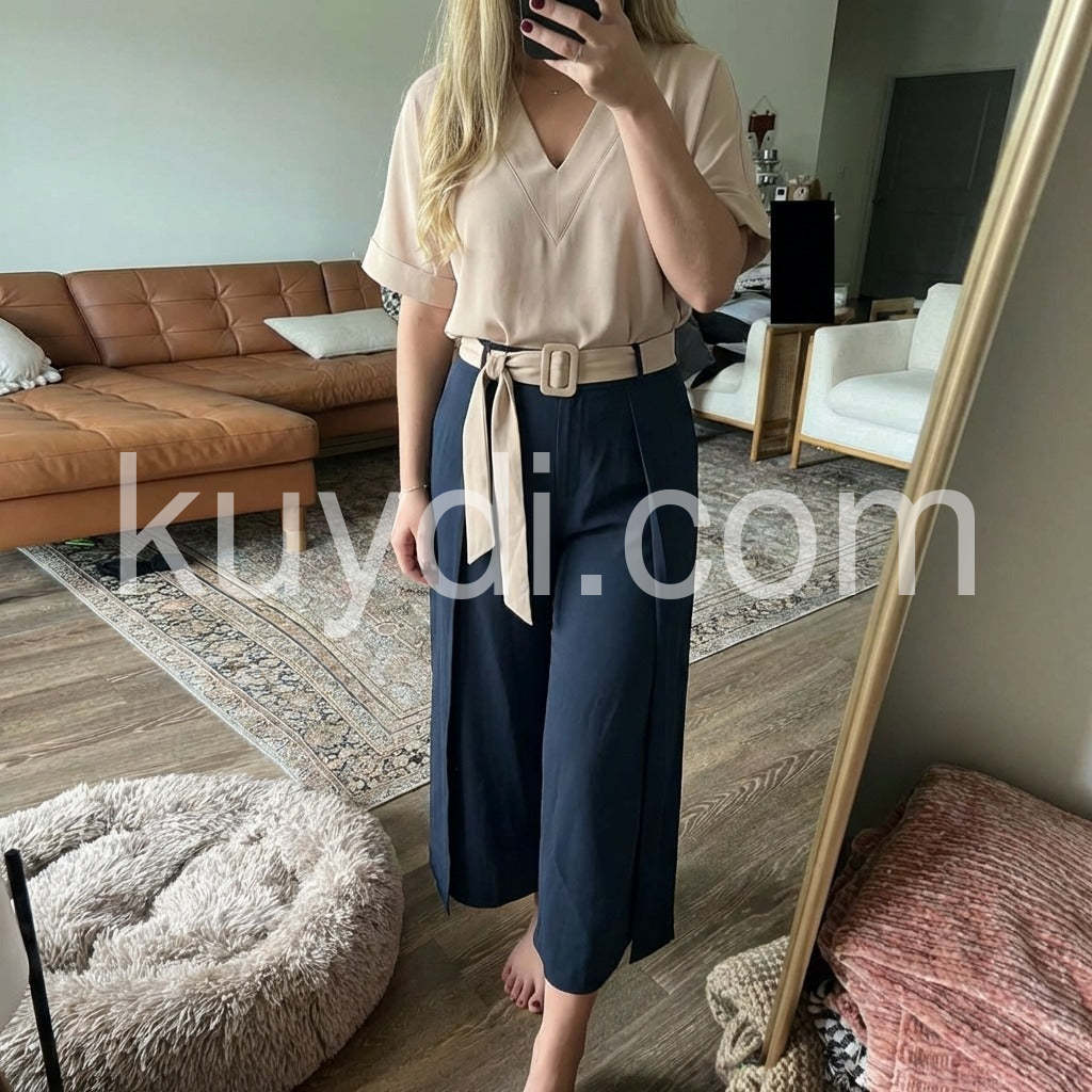 The cut of these culottes is fantastic! I am on the taller side, so they fit exactly like cropped pants should. The V-neck top is super flattering and the whole outfit gives off a very sophisticated vibe. Five stars!