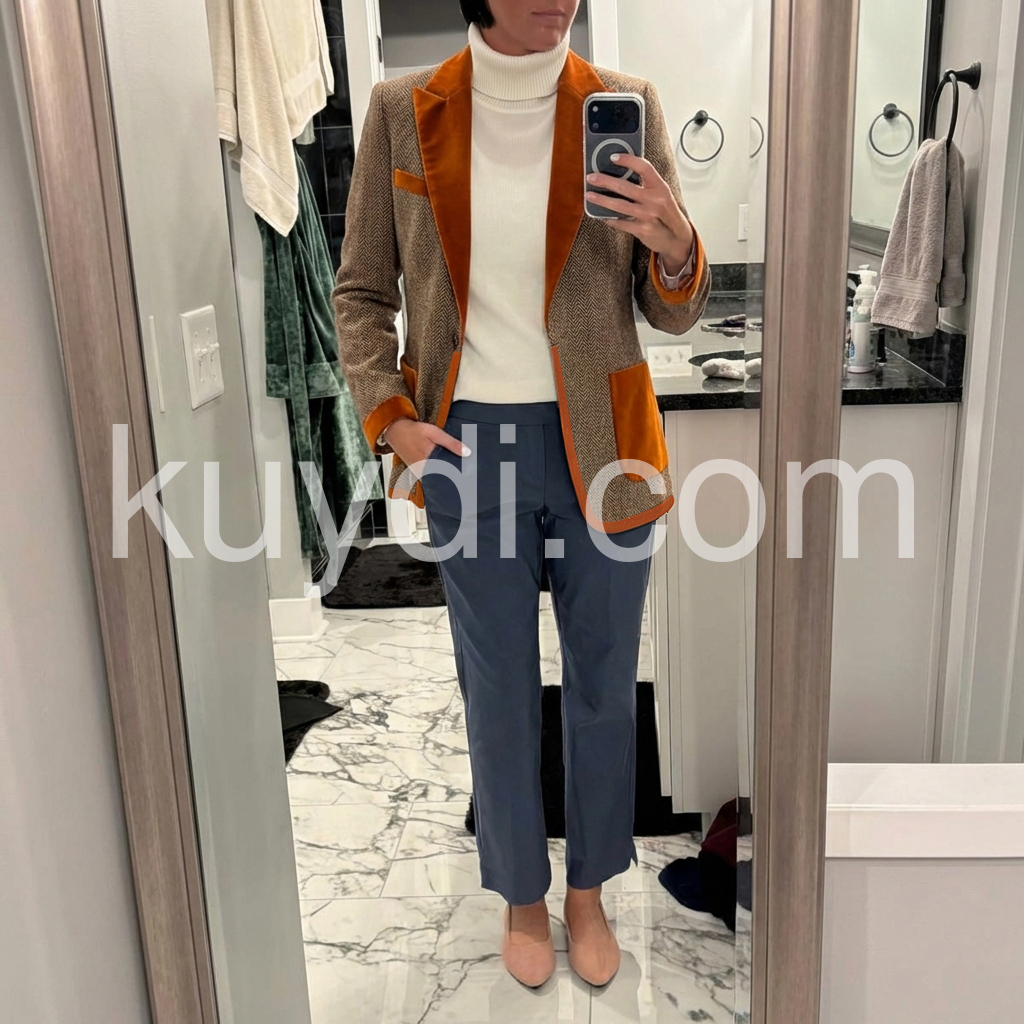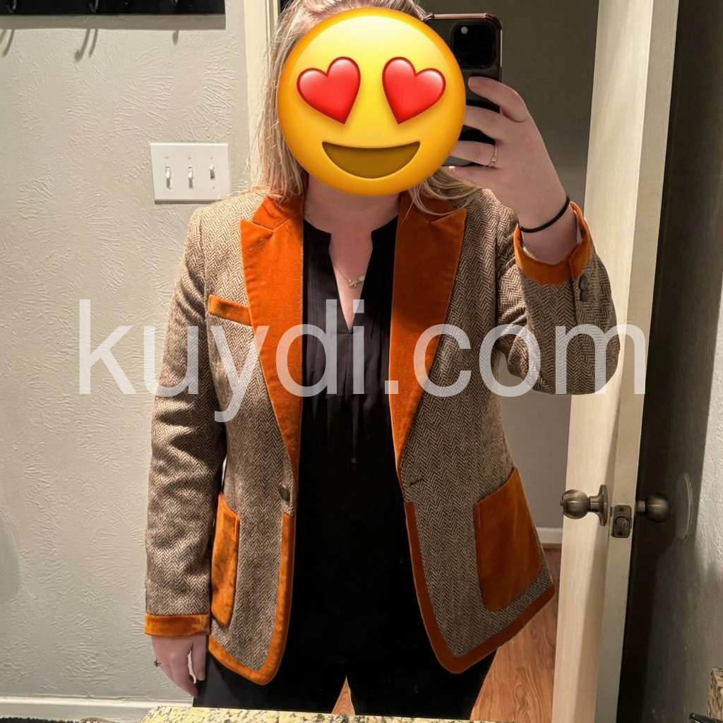 I absolutely love this blazer style coat! The warm herringbone texture looks super premium, and the caramel suede-like trim gives it a classy, high-end vibe. It fits nicely through the shoulders and lays really well without feeling bulky. I’ve worn it for both casual and slightly formal occasions, and it always looks put-together.