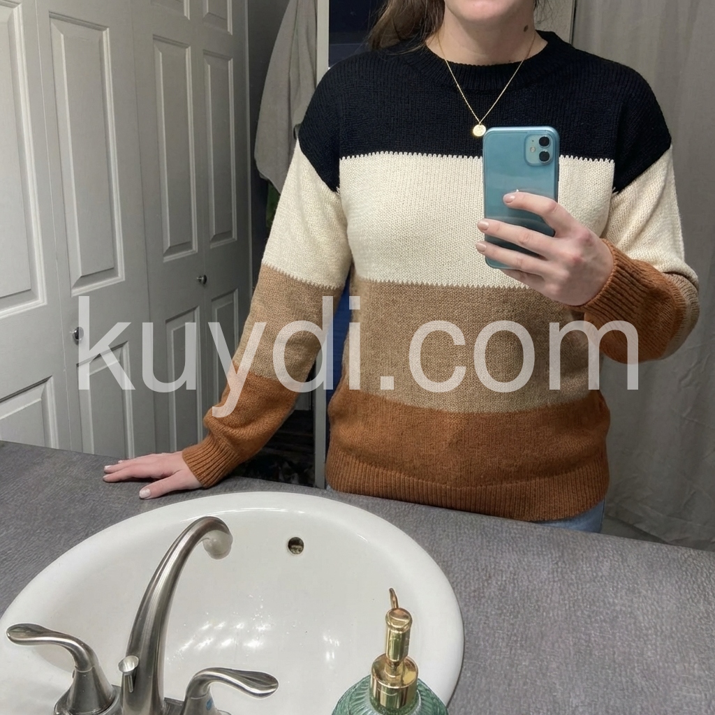 Popular Color Block Long Sleeve Sweater